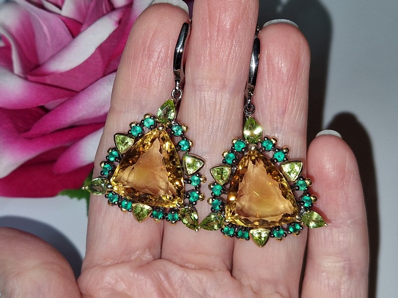 Вес: цитрины — 45 ct, общий вес пары серёг — 20,5 г.