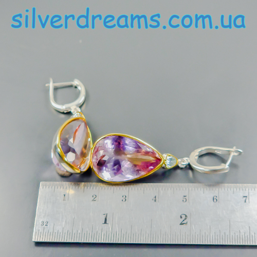Размеры: аметрин — 23х15 мм, серьги — 40х15х15 мм.