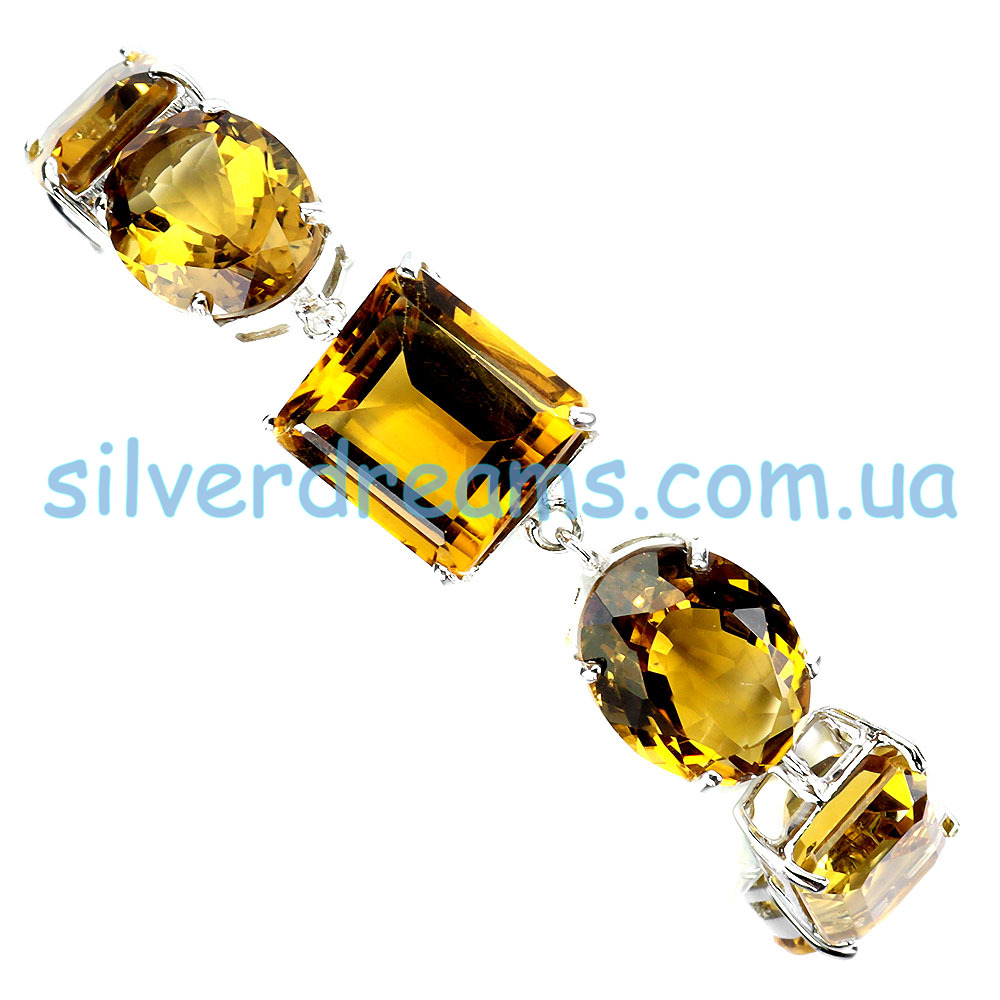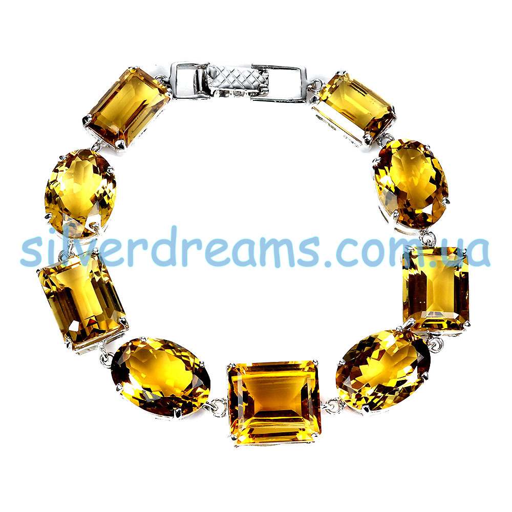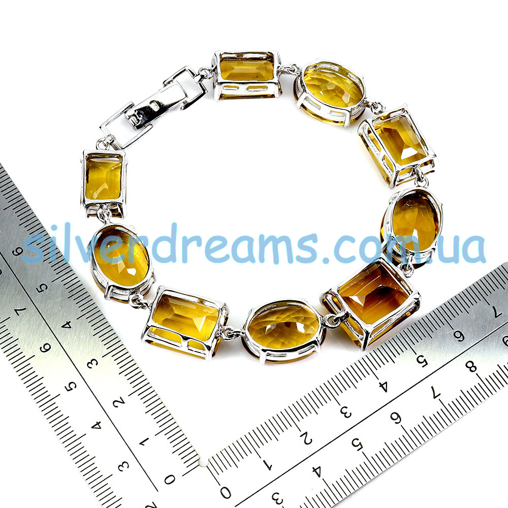 Ослепительный браслет ручной работы из серебра 925 пробы, покрытого белым золотом, с крупными натуральными цитринами.