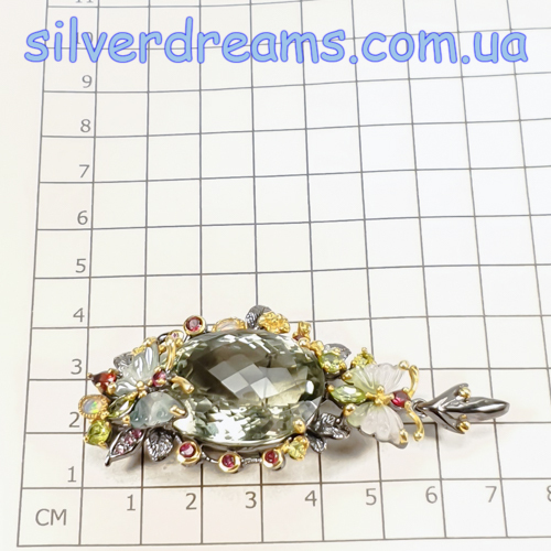Размеры: празиолит — 32х22 мм; кулон — 72x32x15 мм.