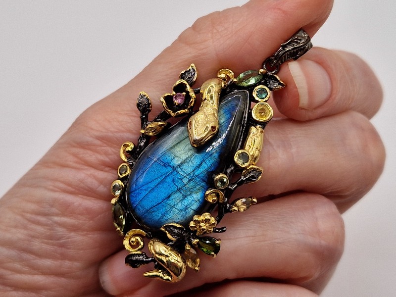 HANDMADE! Серебряный кулон Змея с 43-каратным синим лабрадоритом
