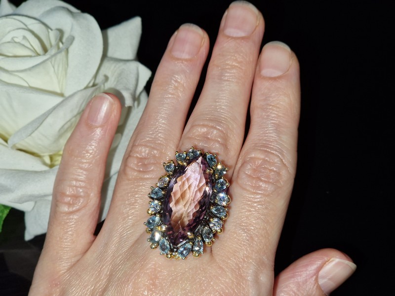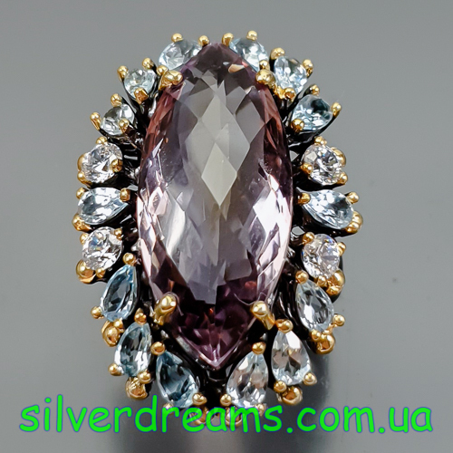 HANDMADE! Коктейльный перстень с 40-каратным аметрином в голубых топазах р.18