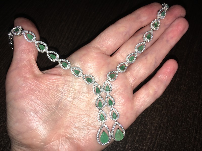 Размеры: изумруды — 9х7 и 5х3 мм, фианиты — 1 мм; общая длина — 18 дюймов (46 см).