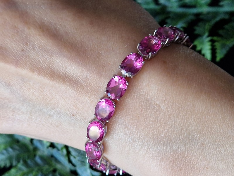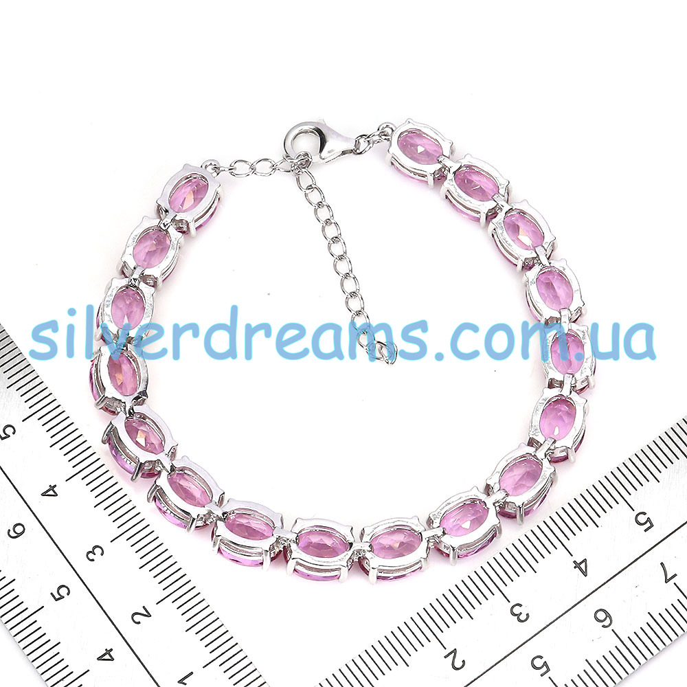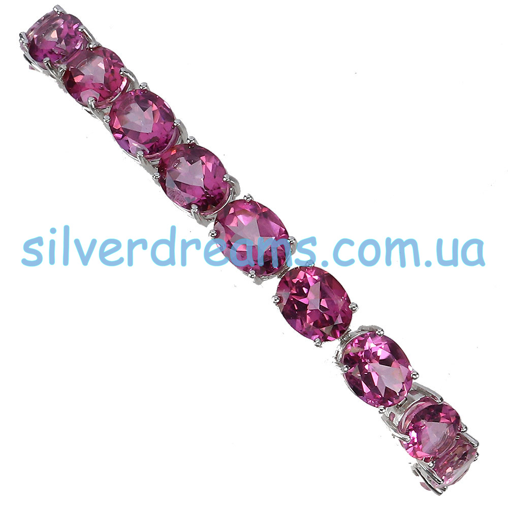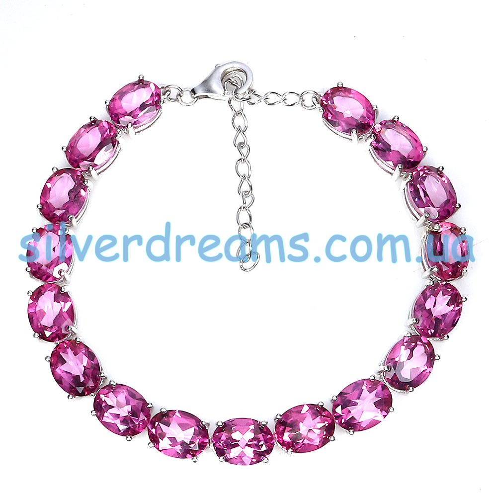 Шикарный представительный браслет из серебра 925 пробы, покрытого белым золотом, с крупными натуральными розовыми топазами.