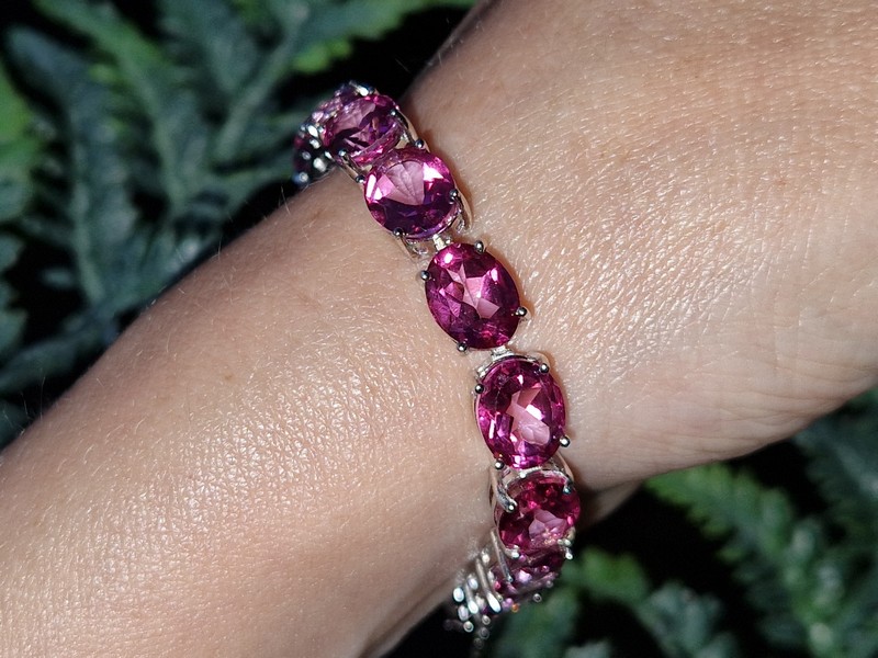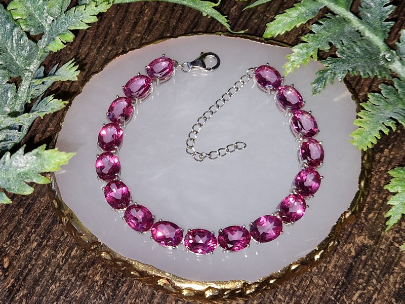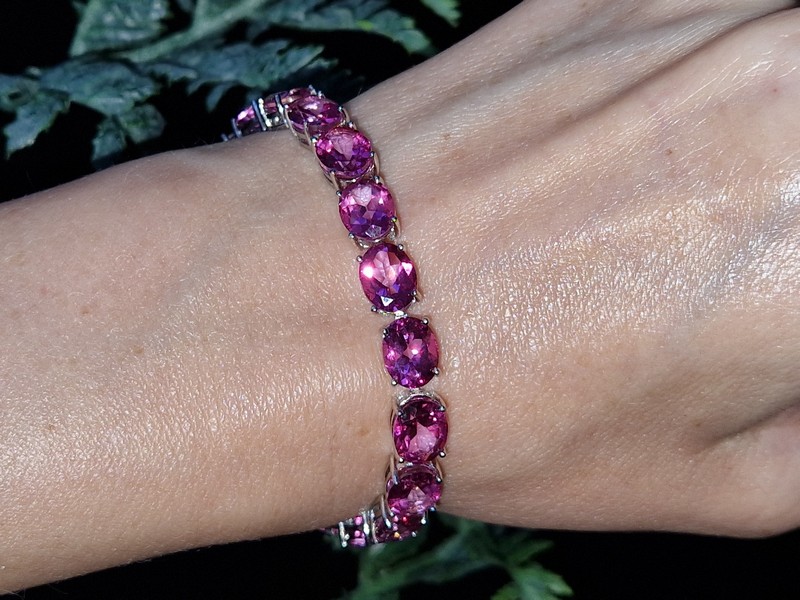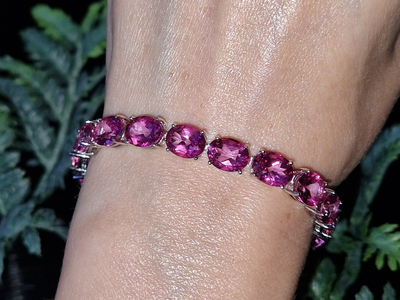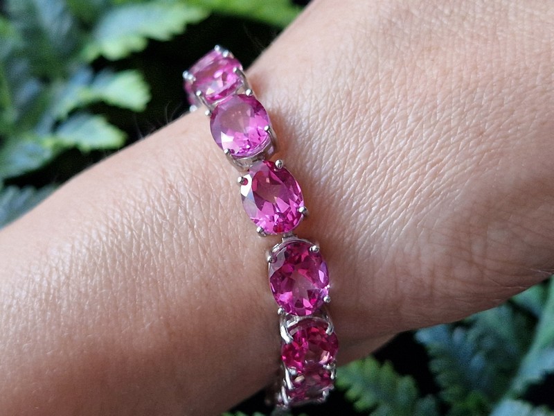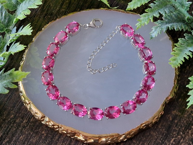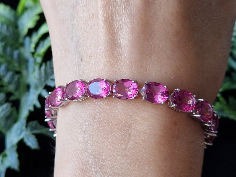 Шикарный представительный браслет из серебра 925 пробы, покрытого белым золотом, с крупными натуральными розовыми топазами.