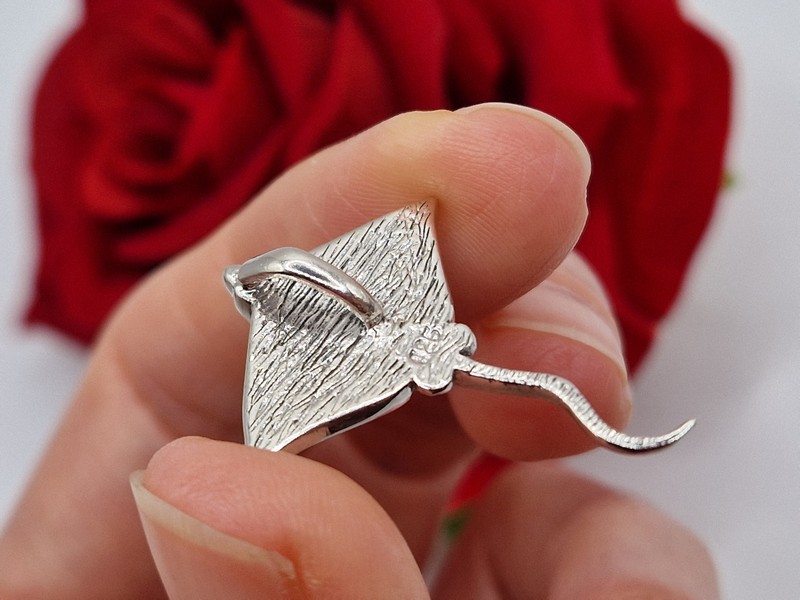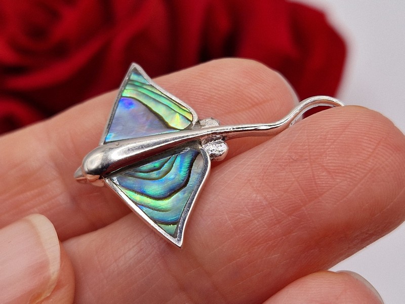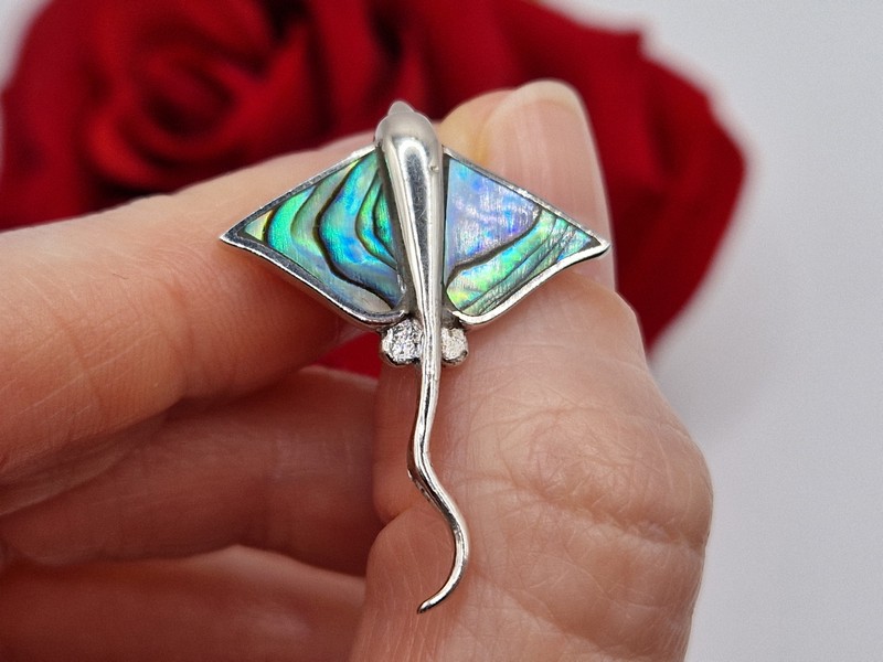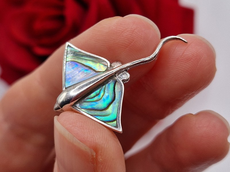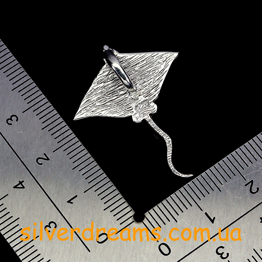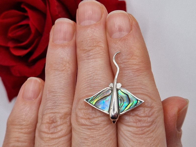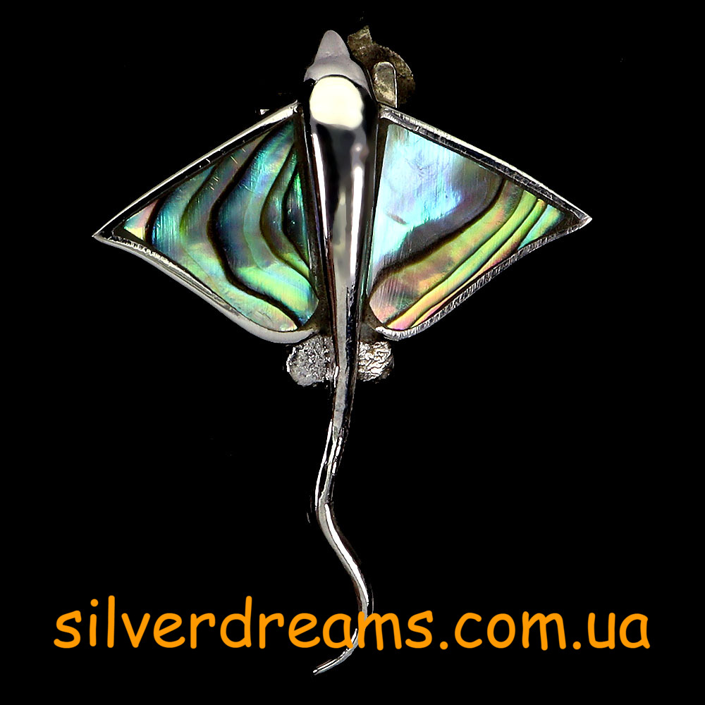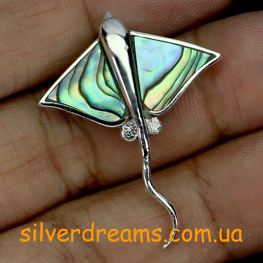 Оригинальный загадочный подвес в виде ската из стерлингового серебра 925 пробы с крупным натуральным халиотисом (морской перламутр).